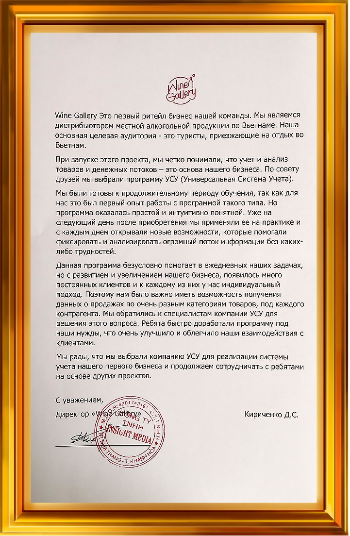 С уважением, Директор «Wine Gallery» Кириченко Д.С.